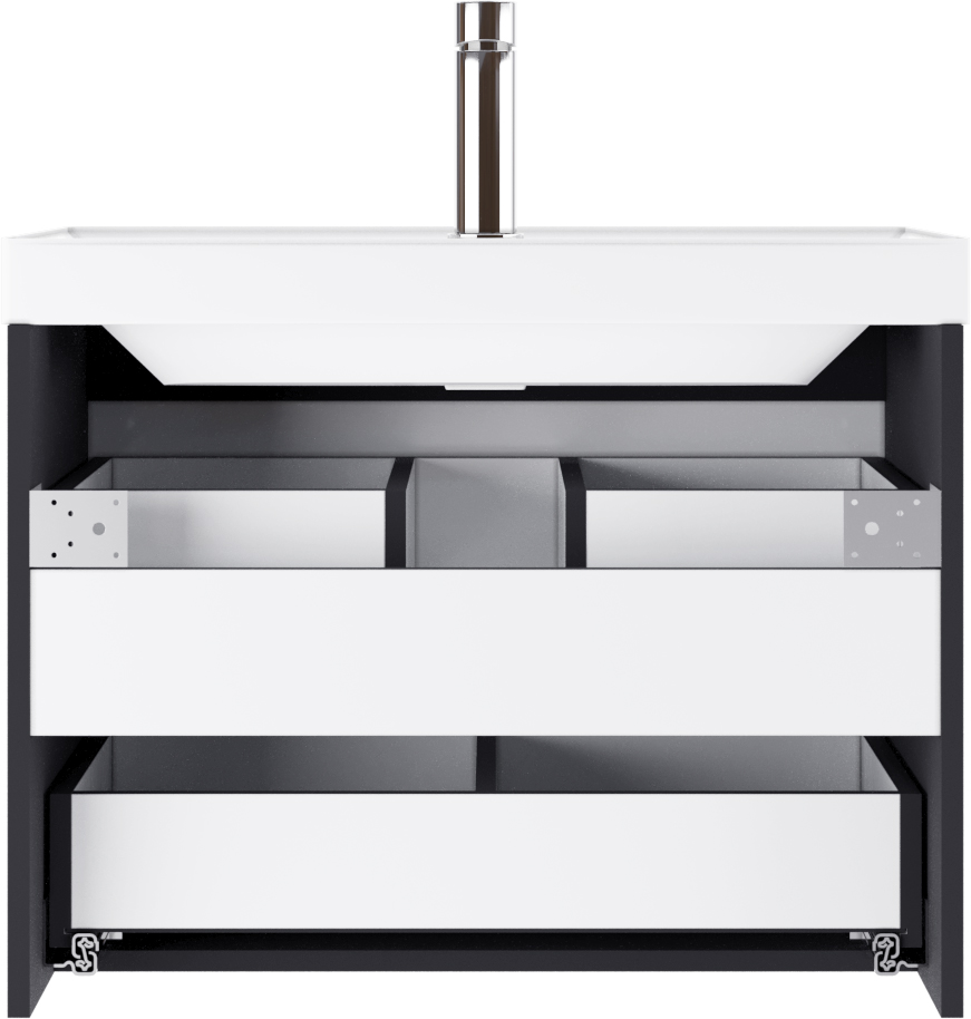 Тумба под раковину в ванную оснащена двумя выдвижными ящиками. Они обеспечивают достаточное пространство для хранения вещей. Направляющие скрытые полного выдвижения с доводчиком гарантируют плавное движение. Модель выполнена из качественных материалов, что обеспечивает долговечность.
