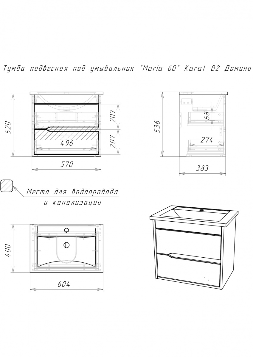 Тумба подвесная под умывальник Maria 60 Karat В2 Домино (DK3203T)