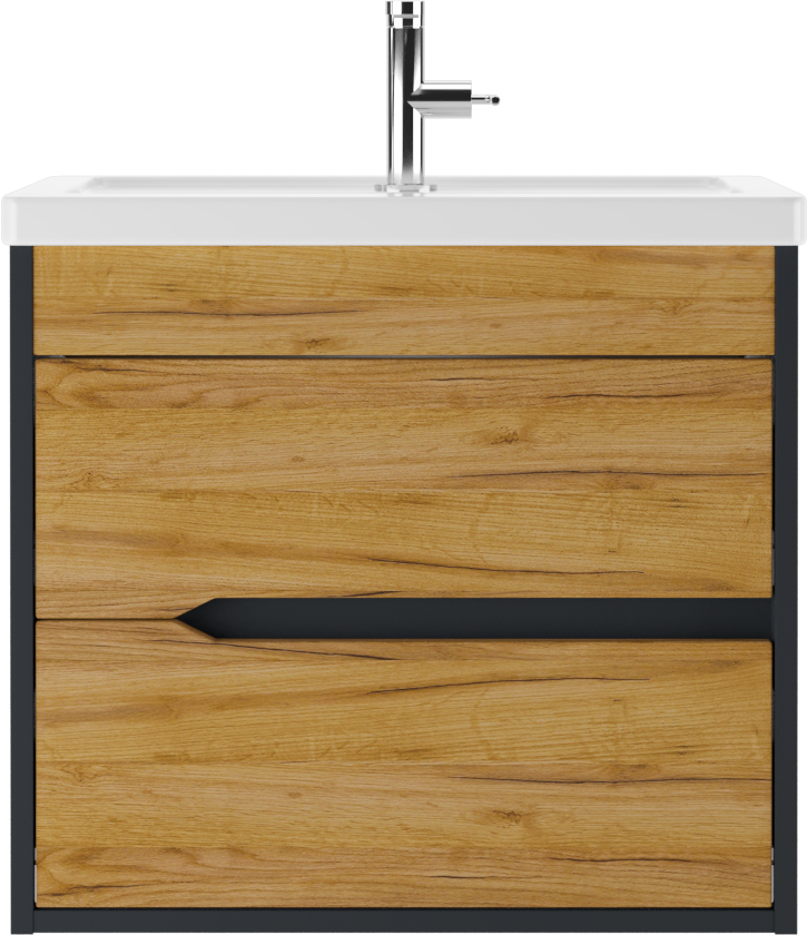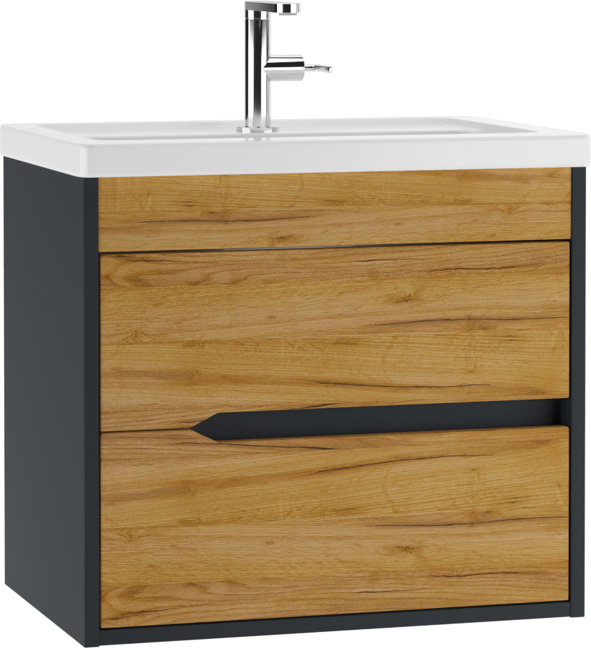 Тумба подвесная под умывальник ""Maria 60"" Karat В2 Домино идеально подходит для создания стильного и функционального интерьера ванной комнаты. Подвесная тумба под раковину ""Maria 60"" станет отличным выбором благодаря своим практичным характеристикам и современному дизайну. Данная модель входит в серию Karat, что гарантирует высокое качество сборки и долговечность использования. Два выдвижных ящика обеспечивают удобное хранение различных принадлежностей, а направляющие полного выдвижения с доводчиком позволят плавно открывать и закрывать ящики, не беспокоясь о шуме или неожиданной поломке. Цвет корпуса в оттенке антрацит прекрасно сочетается с фасадом дуба вотан, создавая гармоничный контраст и подчеркивая современный стиль мебели для ванной комнаты. Производство из сочетания ЛДСП, МДФ материалов с пленкой ПВХ обеспечивает надежность конструкции и привлекательный внешний вид. Шкафчик подвесной в ванную комнату станет центральным элементом интерьера, обеспечивая не только эстетическую привлекательность, но и отличную функциональность. Монтаж к стене дает дополнительное ощущение пространства, освобождая место на полу для других нужд.