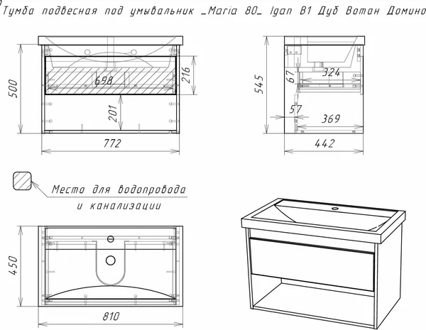 Тумба подвесная под умывальник Maria 80 Igan В1 Дуб Вотан Домино (DI5802T)