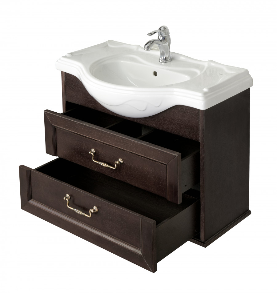 Тумба для раковины America Evolution W в классическом стиле от испанского бренда Roca, выполненная с элементами массива дерева и лицевой фурнитурой от итальянских производителей.