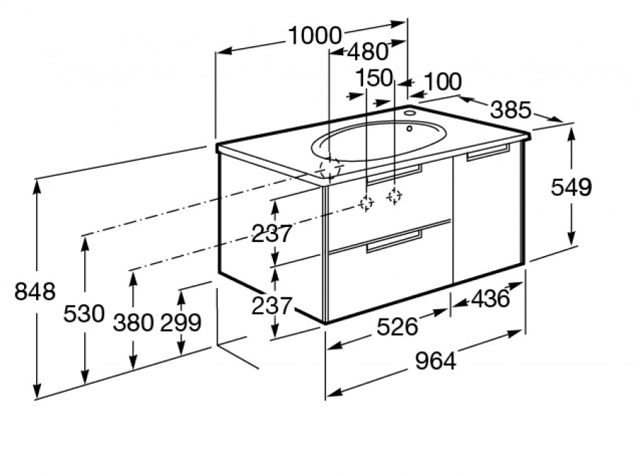 Тумба подвесная Roca Etna 964x370x515 белый (7.8573.0.280.6)