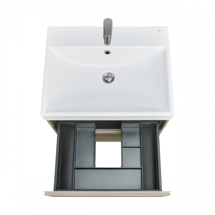 Описание коллекции Погрузитесь в атмосферу Средиземноморья в вашей ванной комнате вместе с коллекцией Ona. Влагостойкие материалы и пленки от европейских производителей – это красота, долговечность и безупречный вид мебели на долгие годы. Описание товара Модули Ona обладают следующими характеристиками и преимуществами. Удобная металлическая профильная ручка во всю ширину модуля обеспечивает легкость открывания ящиков и защиту фасадов от влаги, ударов и износа. В обоих ящиках находятся противоскользящие коврики, а верхний ящик снабжен также встроенной организацией пространства – эстетика и идеальный порядок в ванной комнате. Комфортное и долговременное использование мебели гарантировано благодаря направляющим Hettich полного выдвижения и плавного открывания и закрывания, протестированных на 60 000 циклов. Навесы входят в комплект и выдерживают нагрузку 100 кг, а также обладают функцией регулировки, которая позволяет скомпенсировать неровность стен и установить мебель ровно. Модули Ona комплектуются раковинами Ona из долговечного композитного материала.