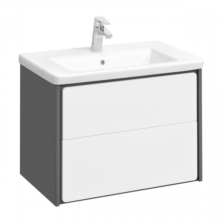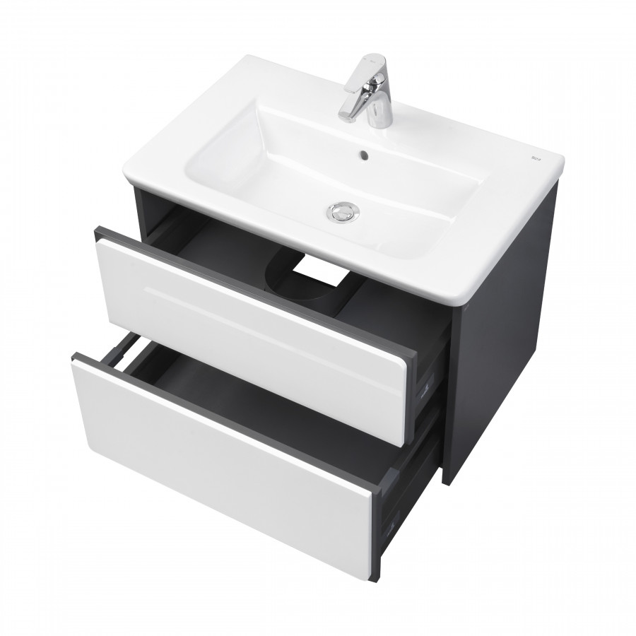 Тумба для раковины Ronda в современном стиле от испанского бренда Roca, выполненная из высококачественной МДФ, с ящиками полного выдвижения с системой push-to-open.