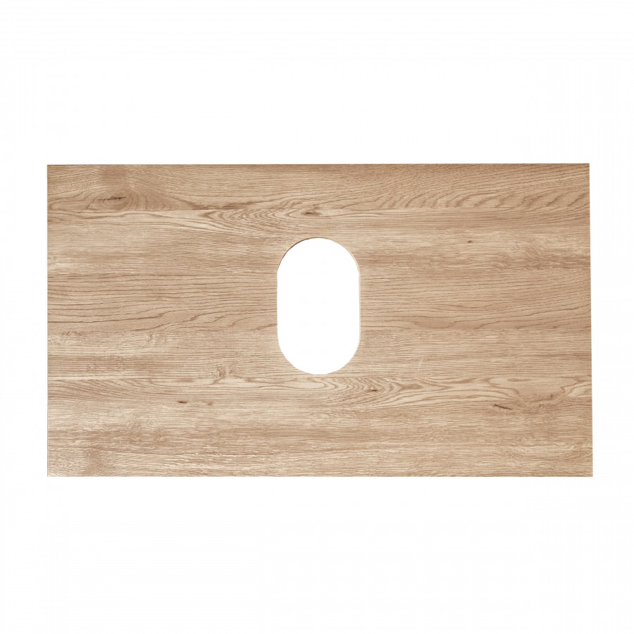 Столешница из влагостойкой ламинированной ДСП в декоре Орех подойдет для комплектации тумб коллекций The Gap, Domi, Victoria накладными раковинами.