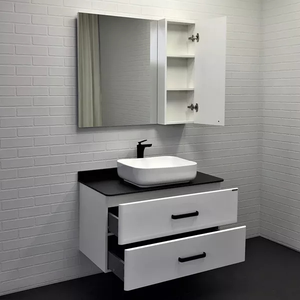Тумба подвесная с раковиной Comforty Амстердам 950x500x645 белый глянцевый/черный матовый (00-00005494)