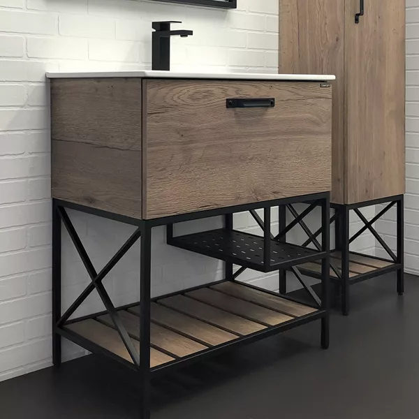 Тумба подвесная с раковиной Comforty Бредфорд 750x465x870 дуб темный (00-00008074)