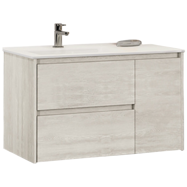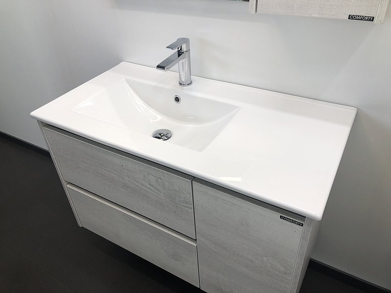 Тумба подвесная с раковиной Comforty Бремен 900x465x555 дуб белый (00004142375)