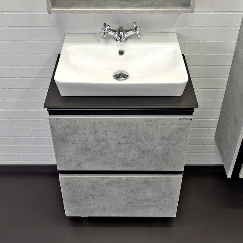 Тумба подвесная с раковиной Comforty Эдинбург 600x400x950 дуб светлый/черный (00-00004763)