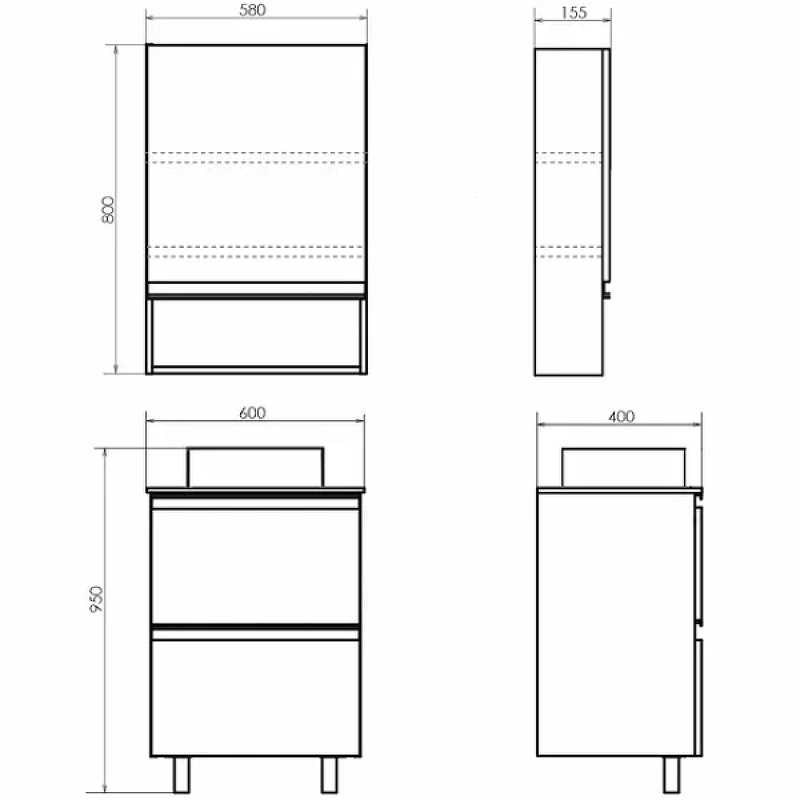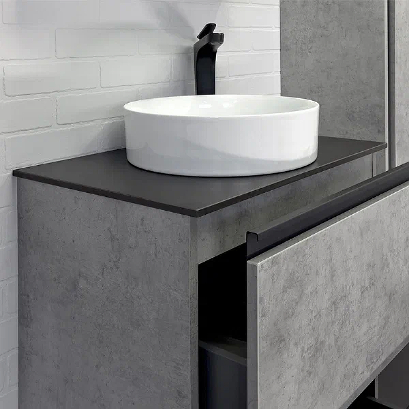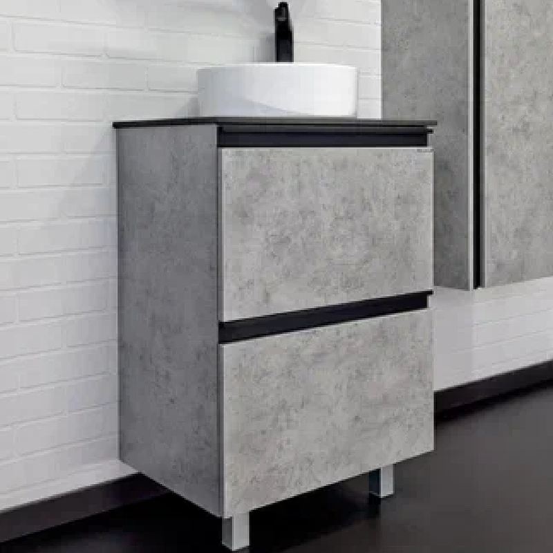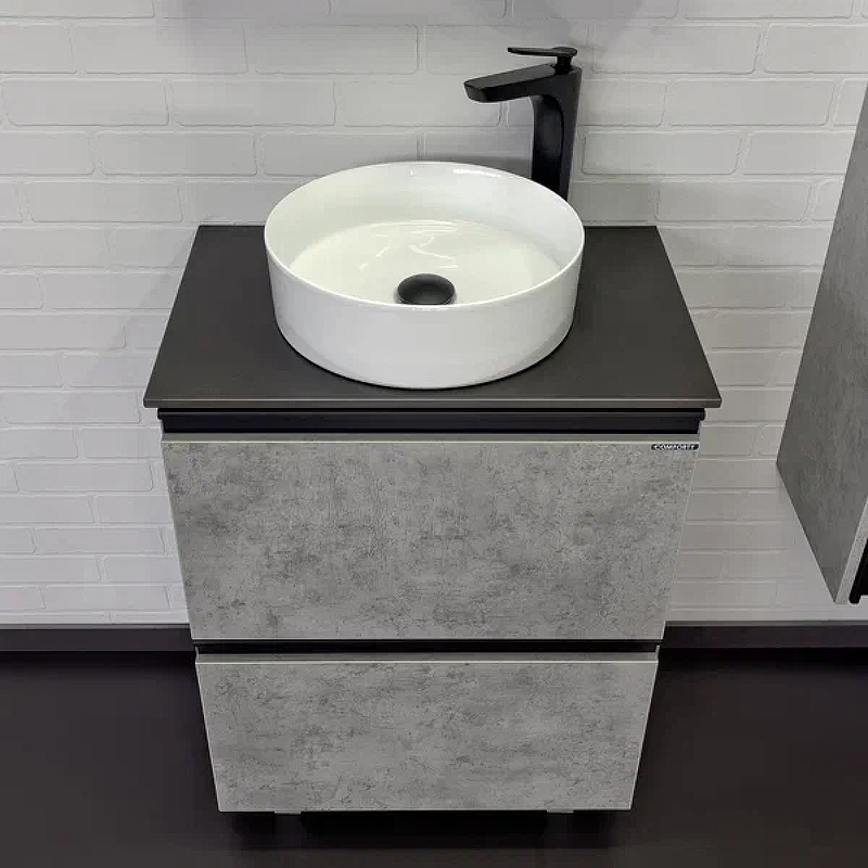 Тумба подвесная с раковиной Comforty Эдинбург 600x400x950 дуб светлый/черный (00-00004767)