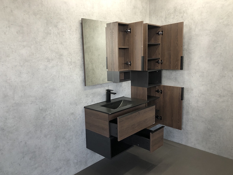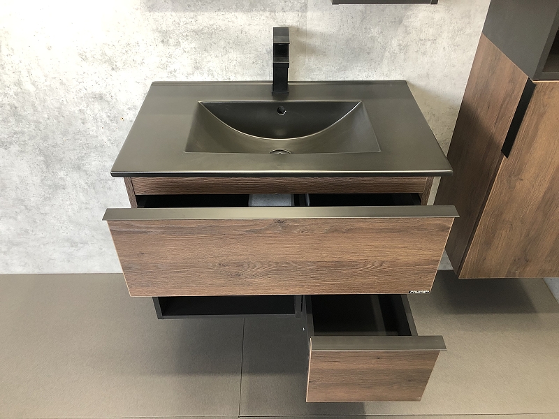 Тумба подвесная с раковиной Comforty Франкфурт 750x465x560 дуб шоколадно-коричневый/черный (00-00000889)