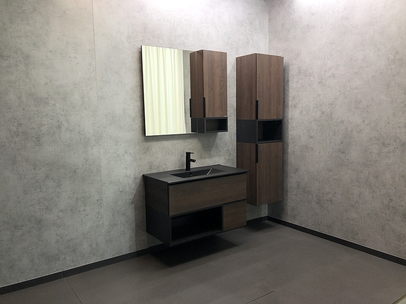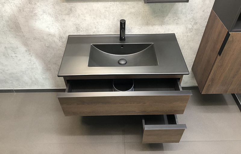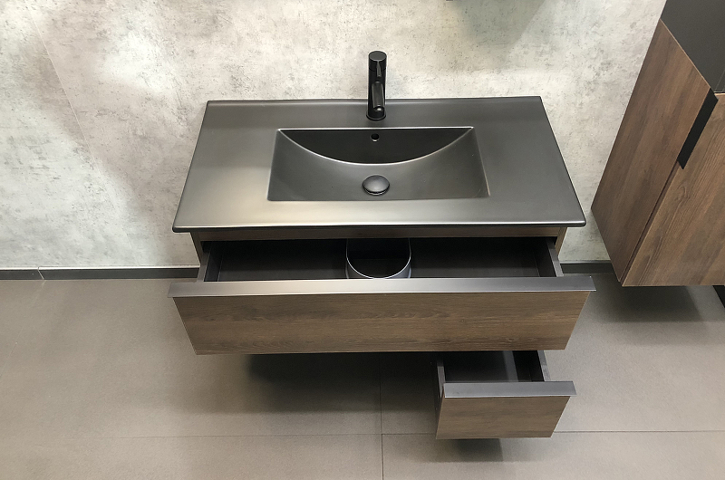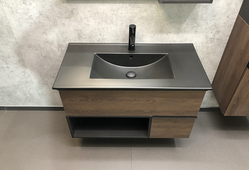 Тумба подвесная с раковиной Comforty Франкфурт 900x465x560 дуб шоколадно-коричневый/черный (00-00002048)