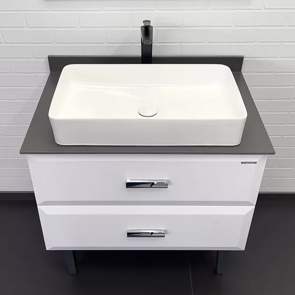 Тумба подвесная с раковиной Comforty Империя 800x520x890 белый глянцевый/графит (00-00014817)