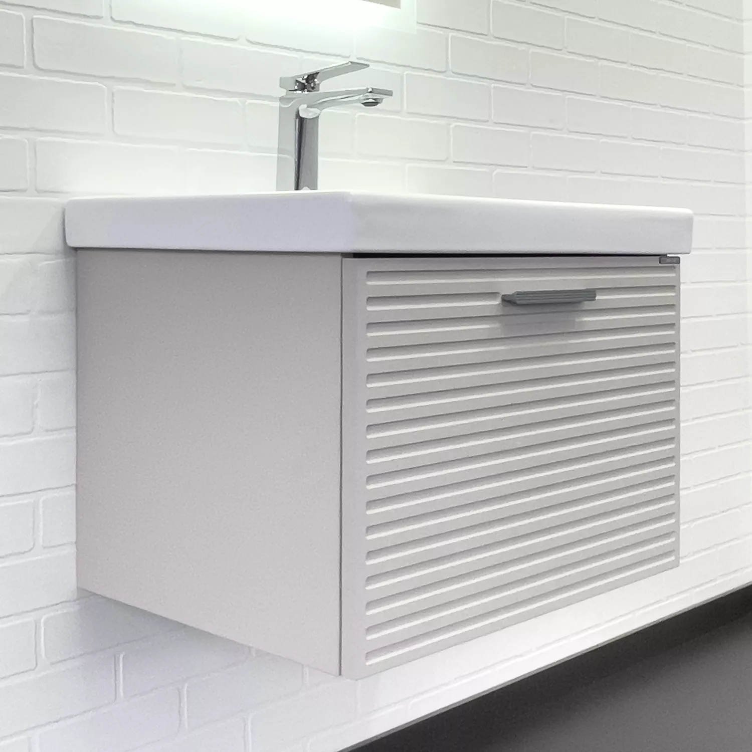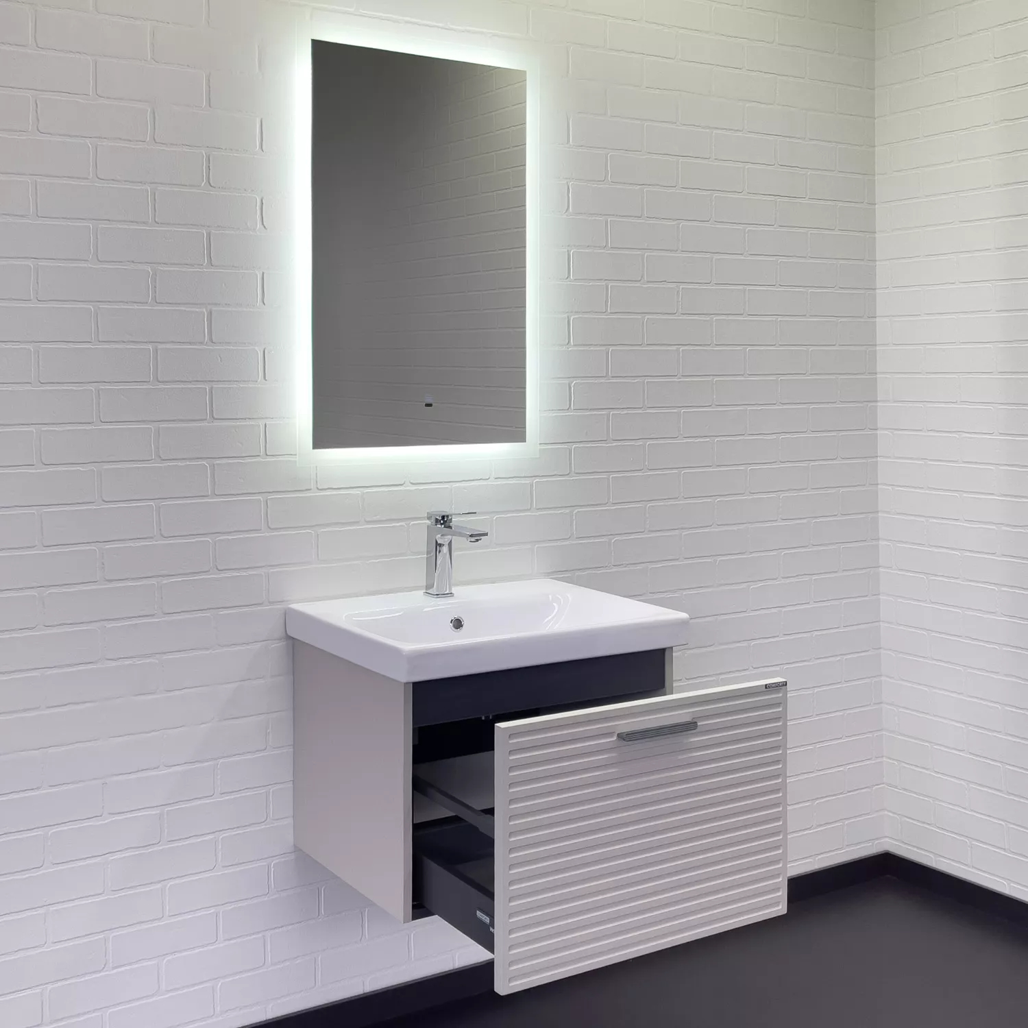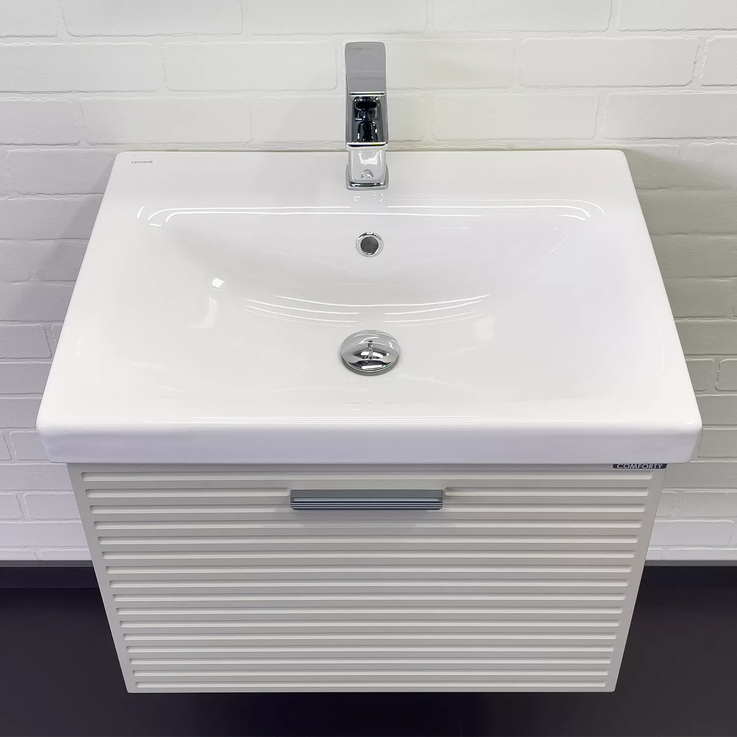Тумба подвесная с раковиной Comforty Касабланка 600x455x460 серый шёлк (00-00019249)