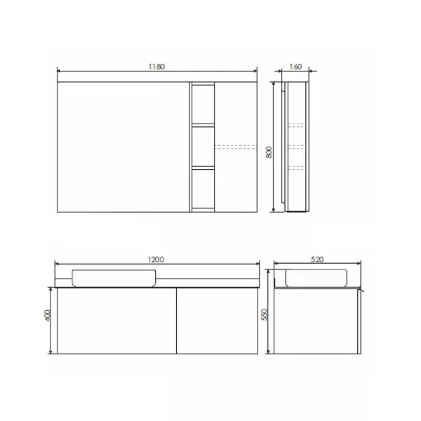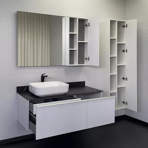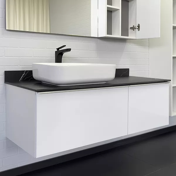 Тумба подвесная с раковиной Comforty Милан 1200x520x545 белый глянцевый/калакатта Блэк (00-00014006)