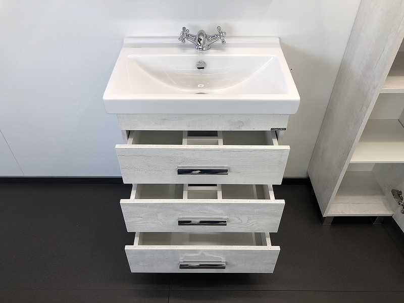 Тумба подвесная с раковиной Comforty Никосия 600x400x860 дуб белый (00004142203)