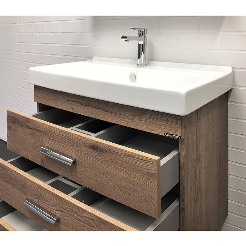 Тумба подвесная с раковиной Comforty Никосия 800x455x860 дуб темный (00-00007621)