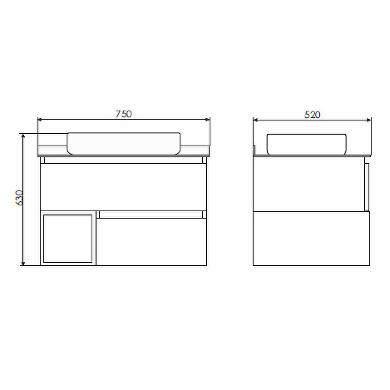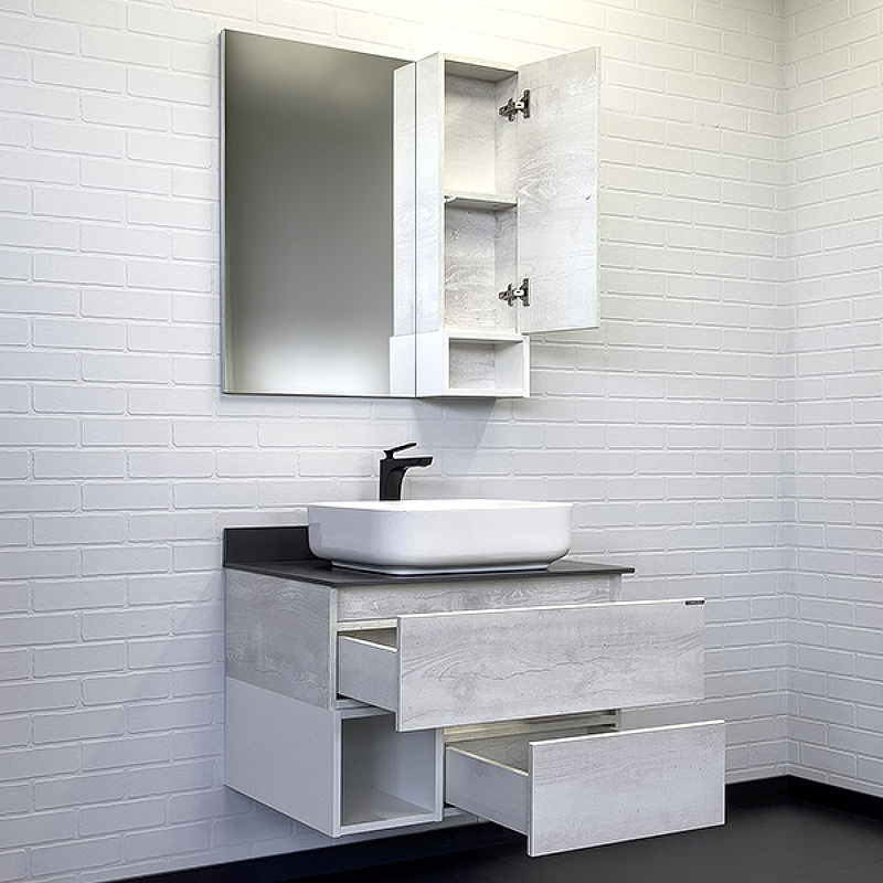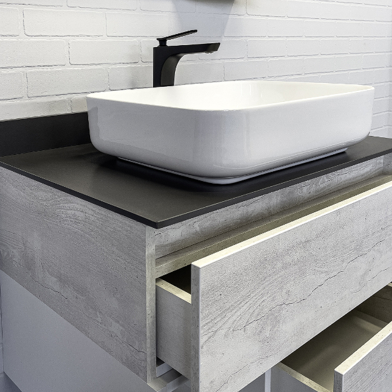 Тумба подвесная с раковиной Comforty Прага 750x520x630 дуб белый/графит (00-00014832)