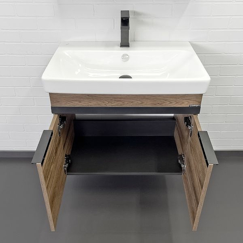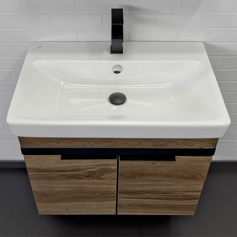 Тумба подвесная с раковиной Comforty Соло 700x145x800 дуб темно-коричневый (00-00010978)