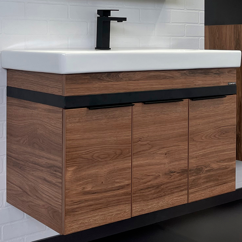 Тумба подвесная с раковиной Comforty Соло 900x150x800 дуб темно-коричневый (00-00010979)