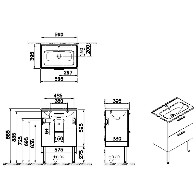 Монтаж: комбинированный (устанавливается на две регулируемые опоры и фиксируется при помощи креплений к стене).
