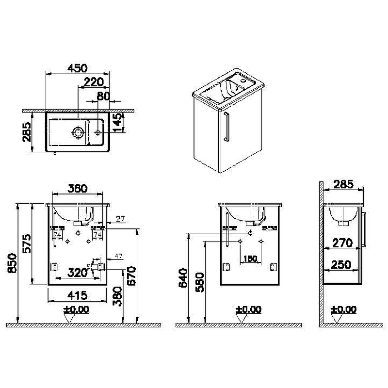 ТУмба подвесная Vitra Root 45 см с квадратной раковиной, с дверцей, глянцевый белый, правосторонняя (66330)