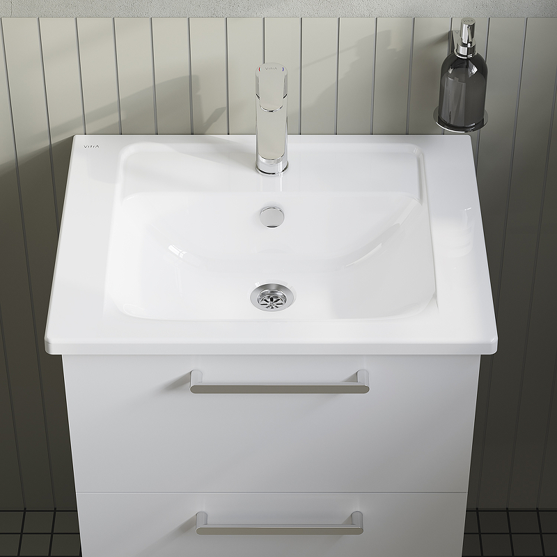 ТУмба подвесная Vitra Root 60 см с квадратной раковиной, 2 ящика, глянцевый белый (66294)