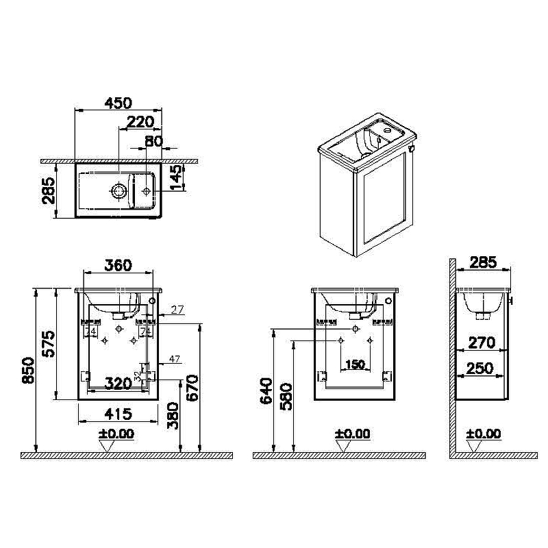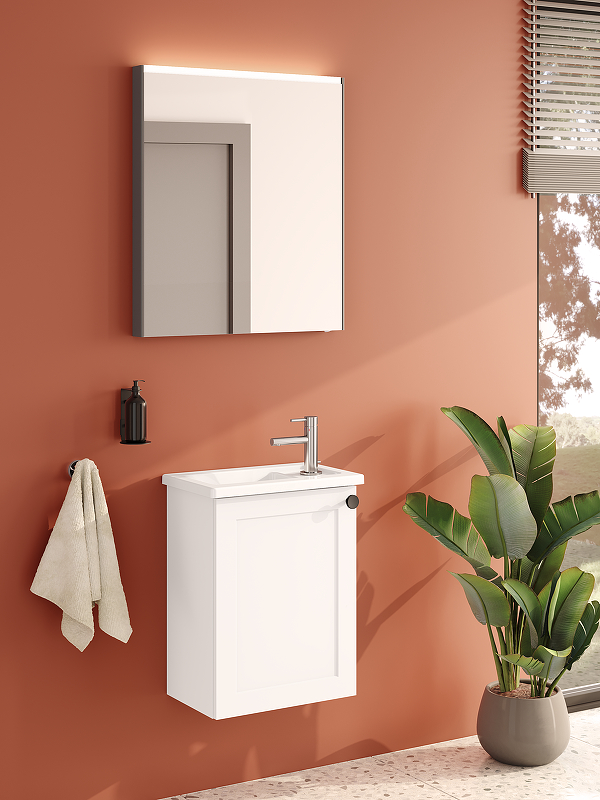 ТУмба подвесная Vitra Root Classic 45 см с квадратной раковиной, с дверцей, матовый белый, левосторонняя (68603)