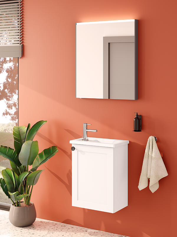 ТУмба подвесная Vitra Root Classic 45 см с квадратной раковиной, с дверцей, матовый белый, правосторонняя (68610)