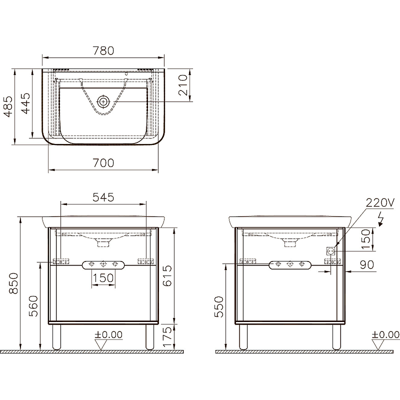 ТУмба подвесная Vitra Sento 80 см с раковиной, с 2 ящиками, с LED подсветкой, матовый белый (60824)