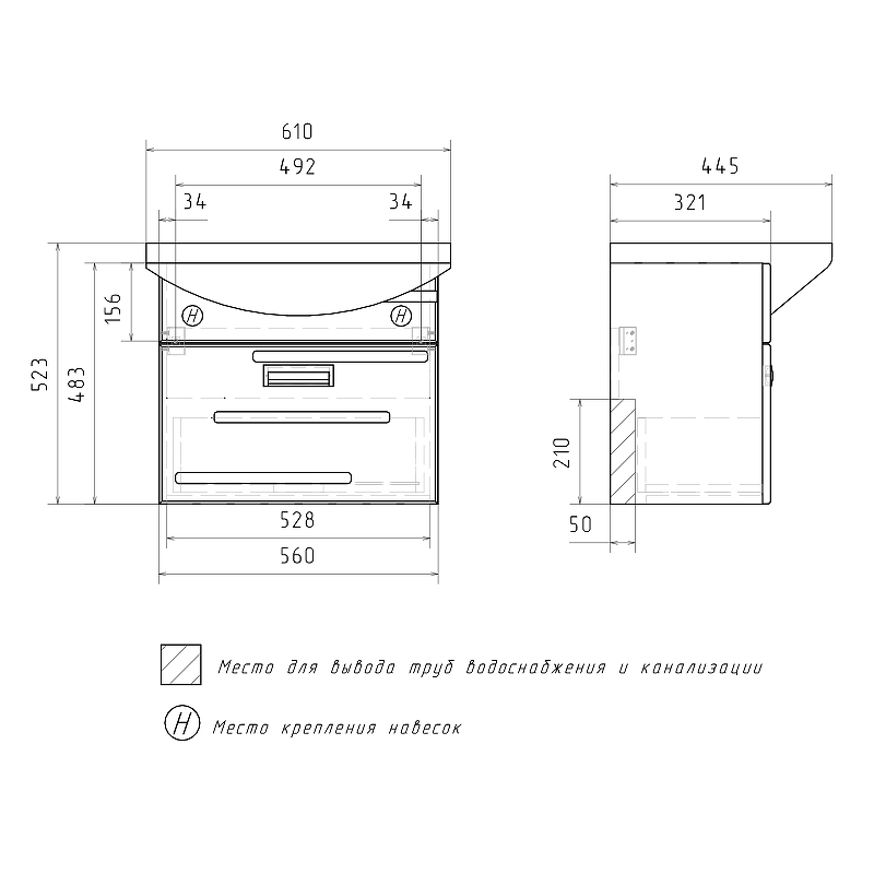 Система хранения: 2 распашные дверцы, внутри полка из ЛДСП.