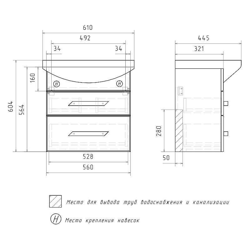Тумба подвесная Volna Onda 560x564 белая (tpONDA60.2Y-01)