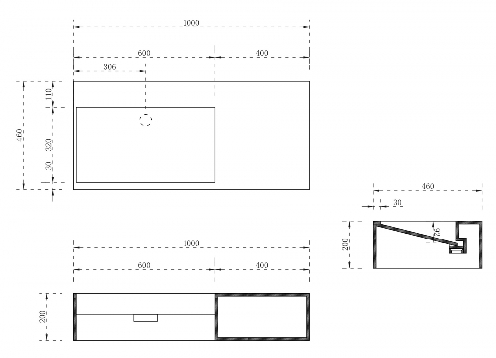 Тумба-раковина подвесная Abber Stein 200x1000x460 белая матовая (AS2640-1.0 R)