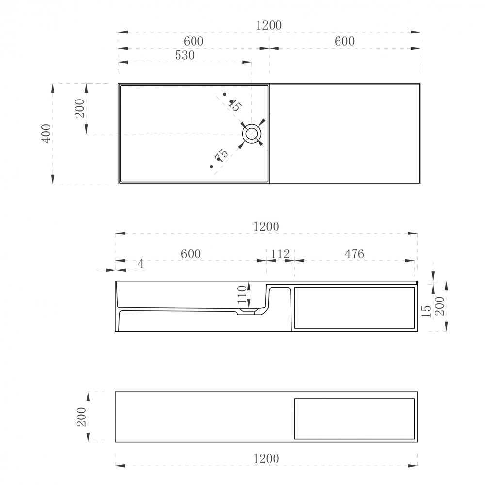 Тумба-раковина подвесная Abber Stein 200x1200x400 белая матовая (AS2649-1.2)