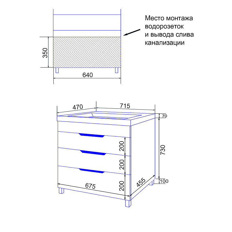 Тумба с раковиной Azario Стиль-70/3Н Соло с раковиной Tempo 70 (CS00092805)