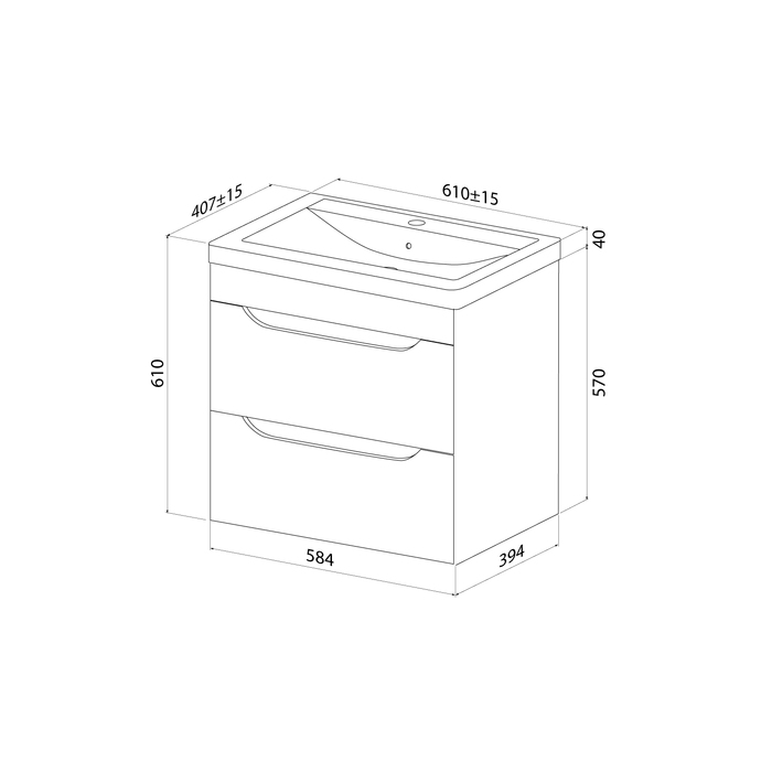 Тумба для ванной комнаты с умывальником, подвесная, белая, Ray. Материал фасадов: МДФ, покрытие фасадов: глянцевая эмаль. Материал боковин: ЛДСП, покрытие боковин: ламинация. Производители фурнитуры: Hettich (навесы). Умывальник: 4076000i28. Материал умывальника: санфарфор. Размер умывальника: 610х407х185 мм.