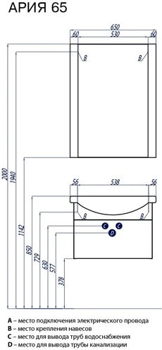 Тумба-умывальник Aquaton Ария 65/1WH207782 Раковина Смайл-65 (1A1340K0AA010)
