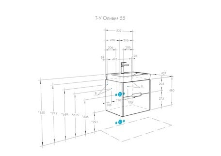 Тумба-умывальник Aquaton Оливия 55 Белый матовый/1WH501620 Умывальник Адриана 55 (1A2542K0OL010)