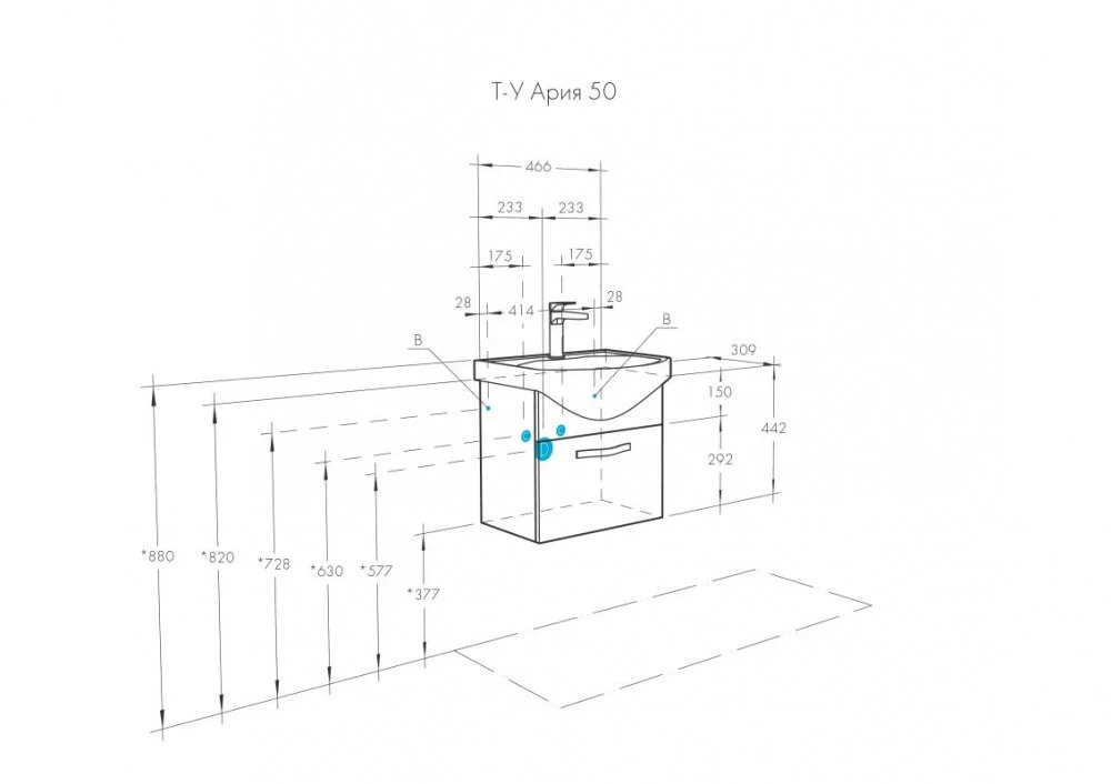 Тумба-умывальник Aquaton подвесная Ария 50/1WH207781 Раковина Смайл-50 (1A1403K0AA010)