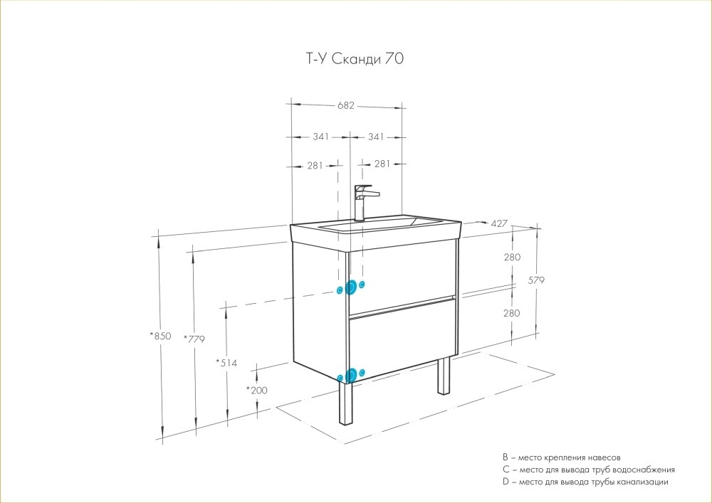 Тумба-умывальник Aquaton Сканди 70 Бел/Дуб Рустикальный/1WH501628 Раковина Адриана 70 (1A2518K0SDZ90)