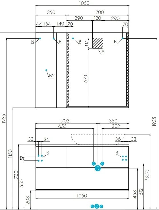 Тумба-умывальник Aquaton Терра 105 Дуб Кантри/Антрацит/1A73313KLK010 Раковина Лола 60 (1A2469K2TEKA0)