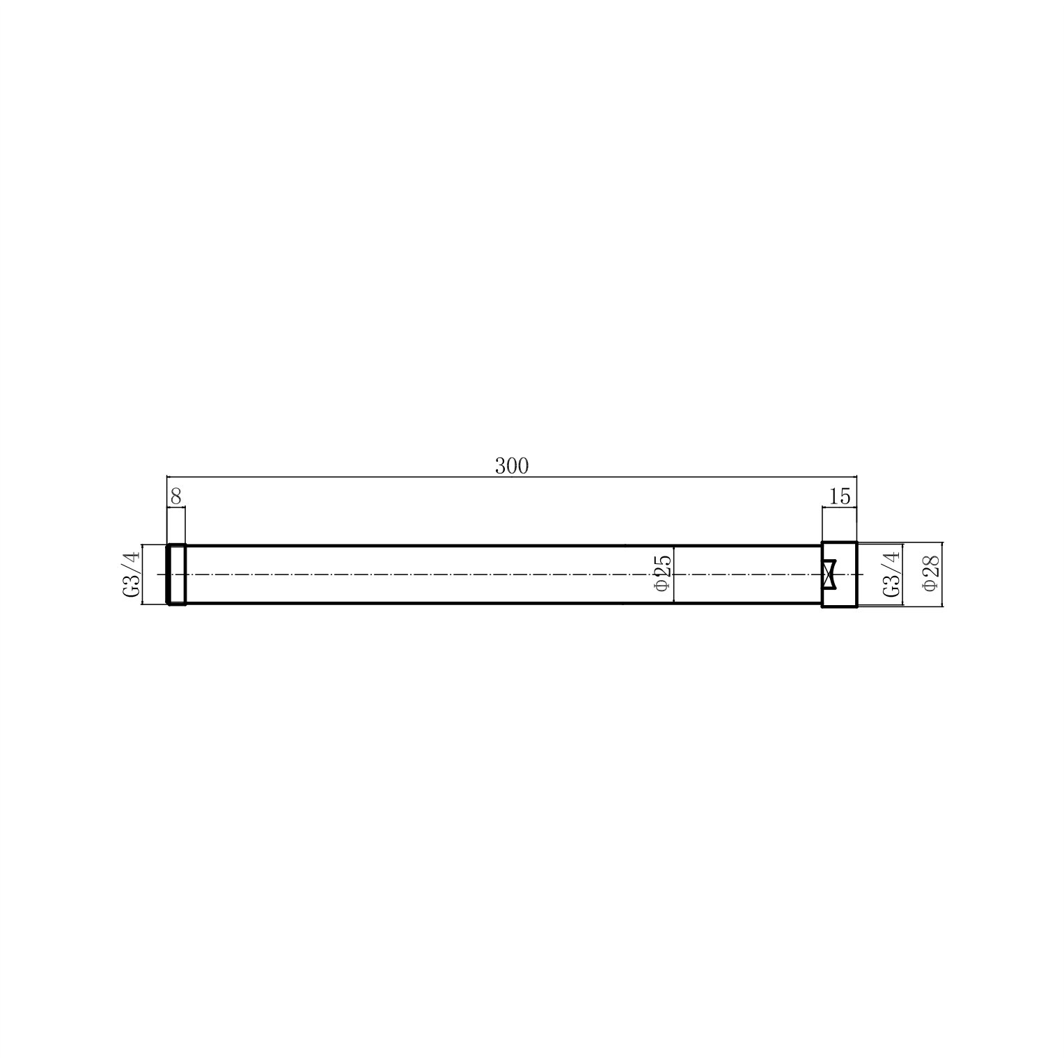 удлинитель штанги душевой стойки, L=300 мм, D=28 мм