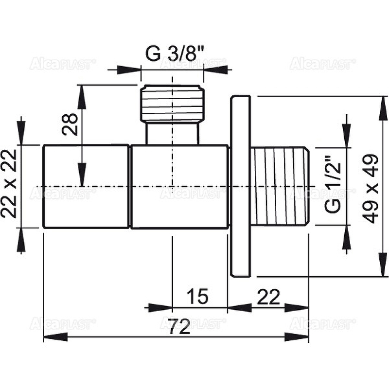 Угловой вентиль Alcaplast 1/2"3/8" квадратный хром (ARV002)