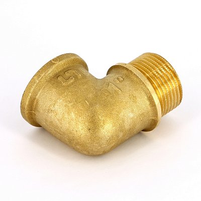 Фитинг предназначен для перемены направления потока рабочей среды в трубопроводах под определенным углом. Наружная/внутренняя резьба. Изготовлен из латуни.