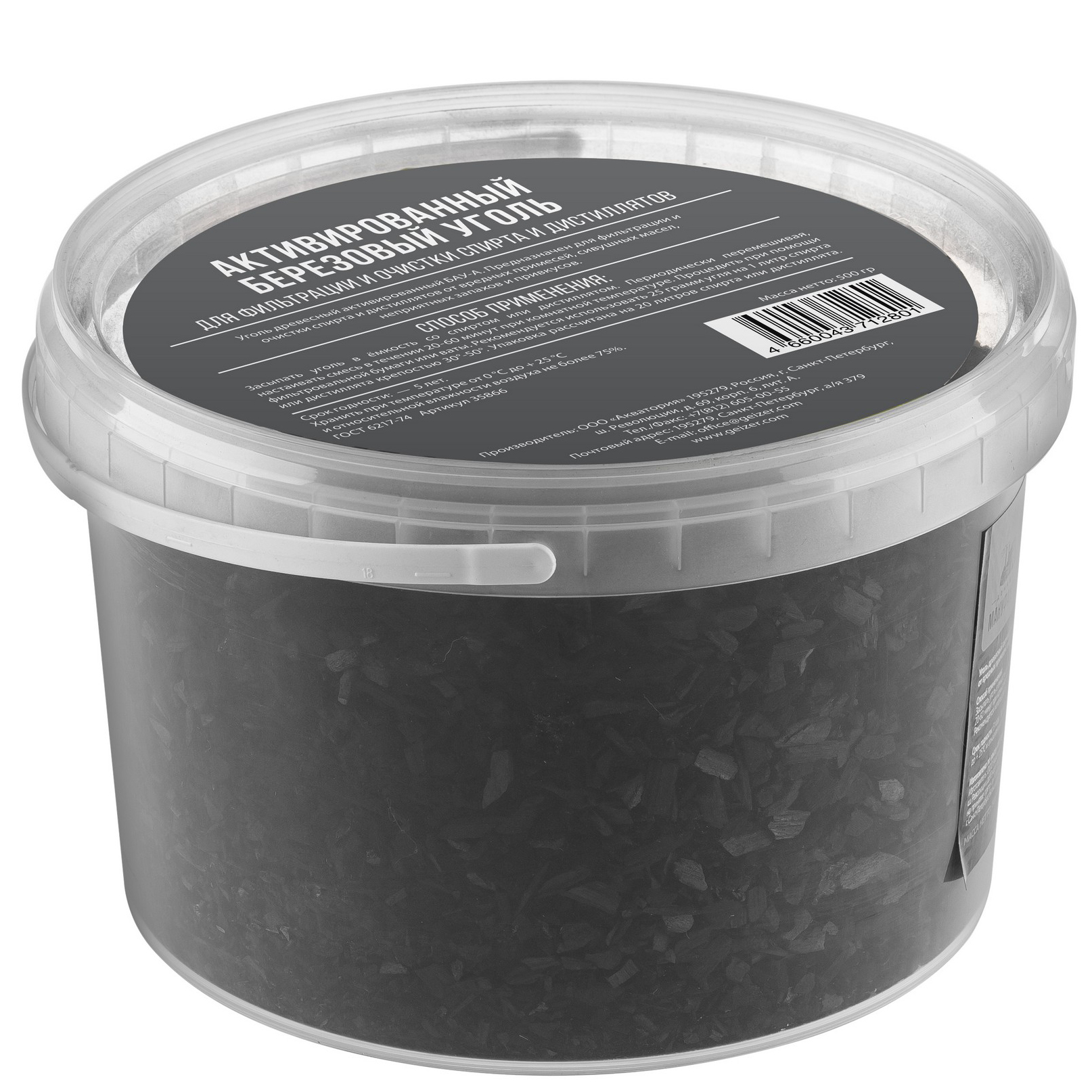 Уголь активированный березовый Гейзер БАУ 0,5 кг (в ведёрке) (35866)