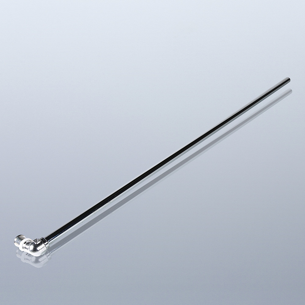 Угловой пресс-фитинг с хромированной латунной трубкой (наружный диаметр – 15, толщина стенки – 1 мм) для подключения отопительного прибора к разводке из металлополимерных труб.