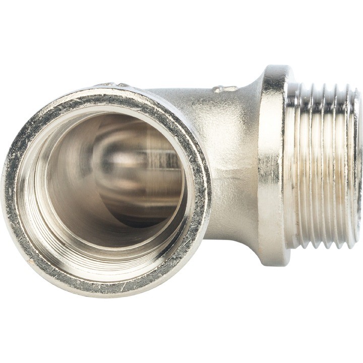 Угольник ВН никелированный с упором Stout - одна из разновидностей фитингов, которая предназначена для перемены направления потока рабочей среды в трубопроводах под определенным углом.