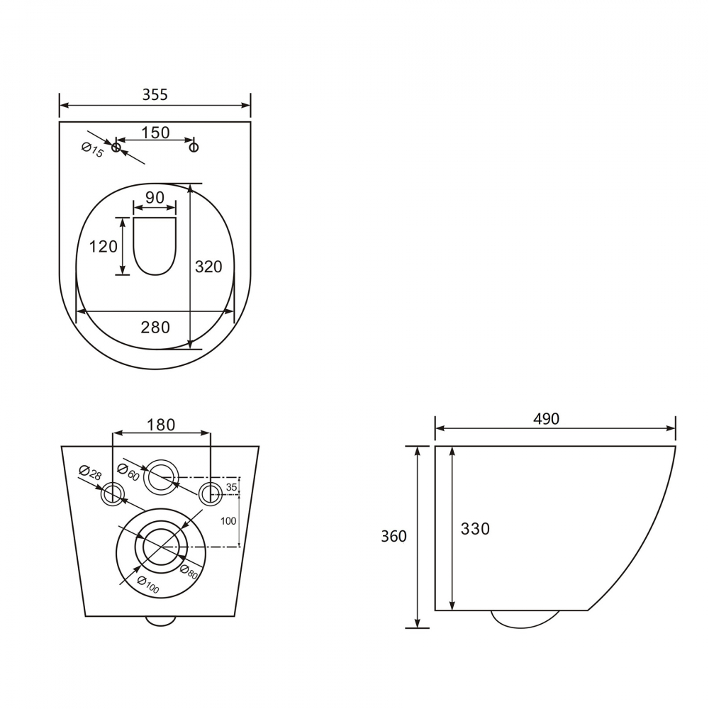 Унитаз Abber Bequem подвесной белый, безободковый, смыв торнадо (AC1102T)