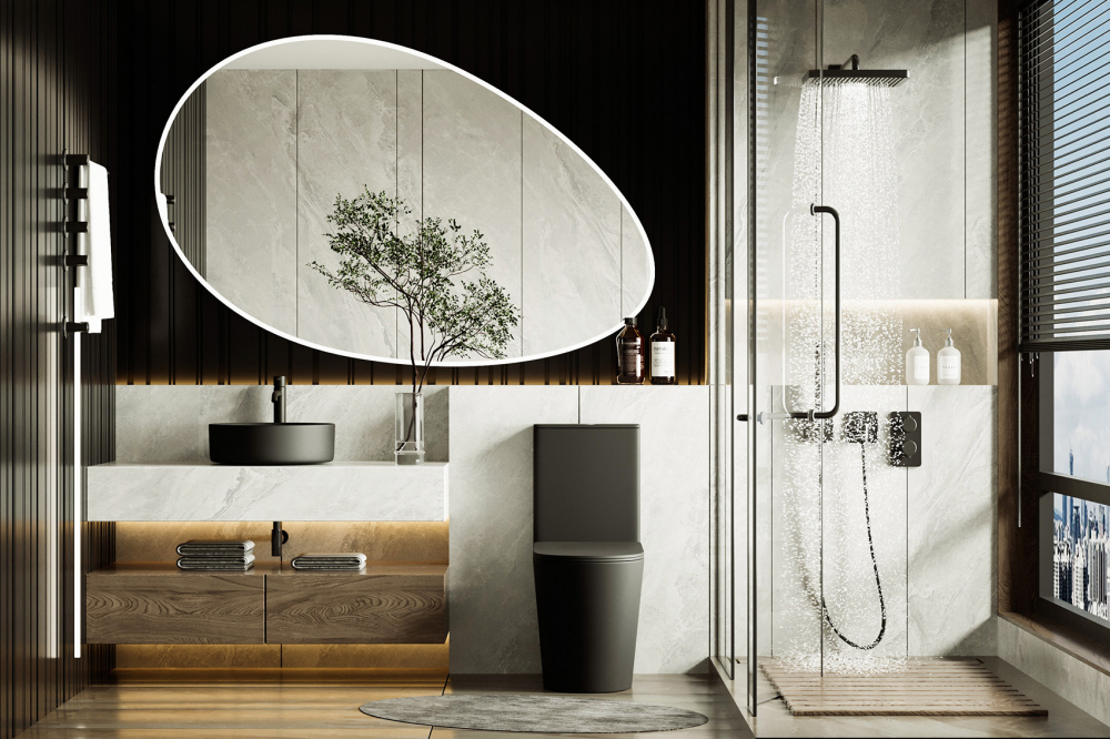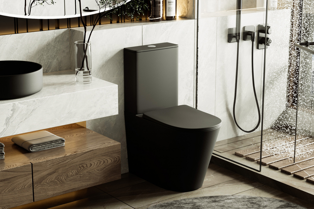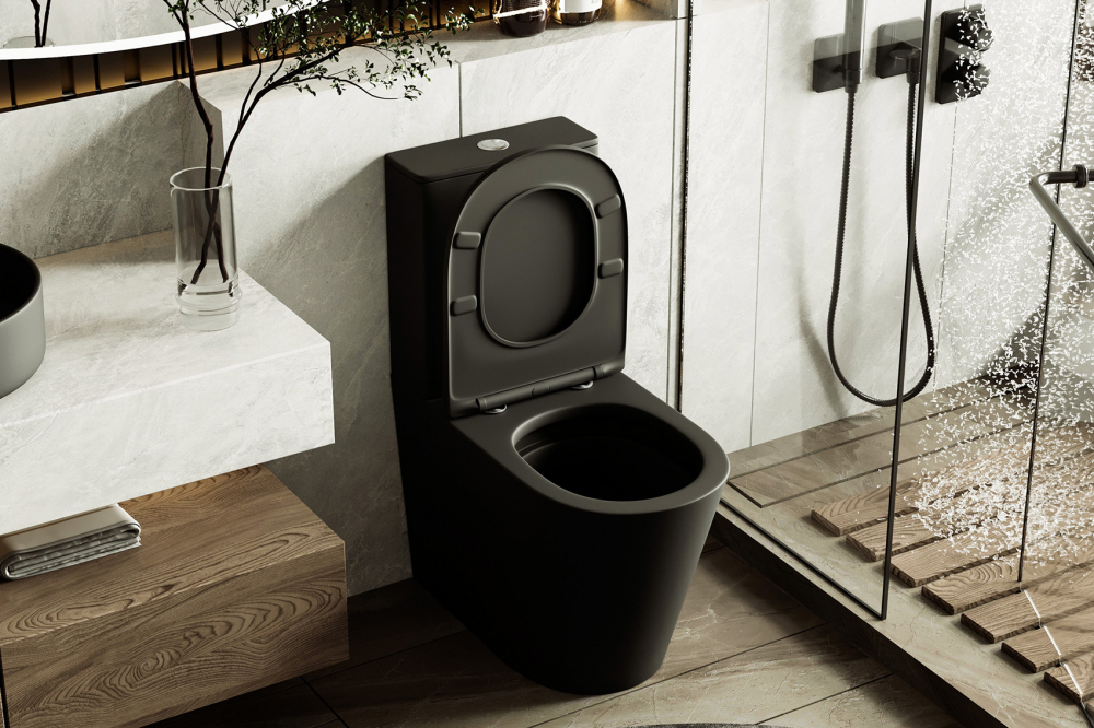 Унитаз-компакт ABBER Bequem черный матовый, безободковый (AC1112TMB)