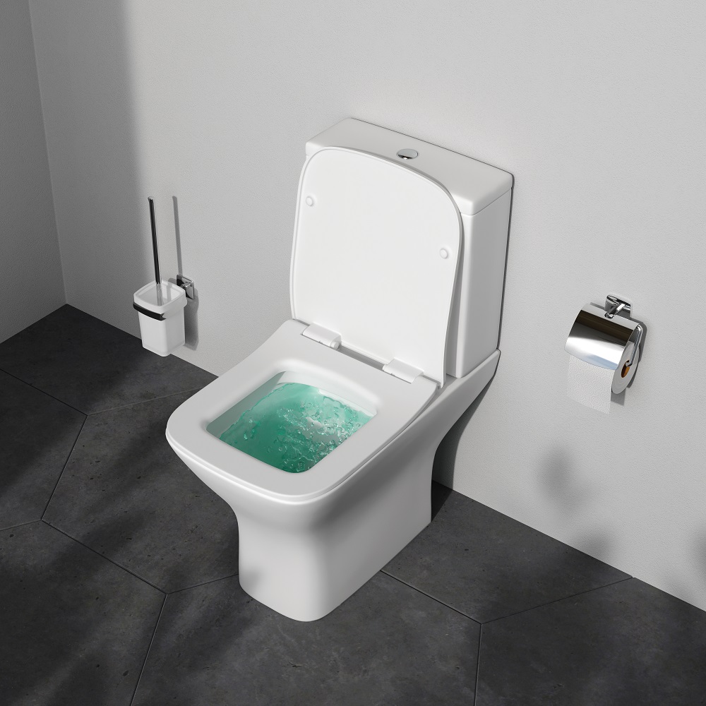 Безободковый унитаз-компакт Gem выполненный в трендовой квадратной с использованием передовых технологий станет отличным дополнением абсолютно любой ванной комнаты.